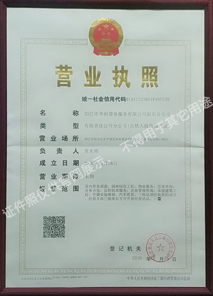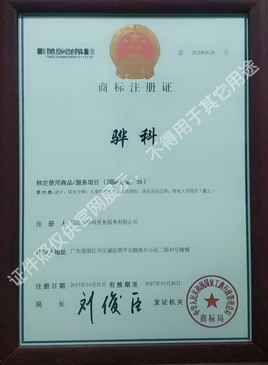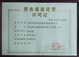 首批獲得廣東省人力資源廳、陽(yáng)江市勞動(dòng)和社會(huì)保障局頒發(fā)人力資源許可證的合法單位